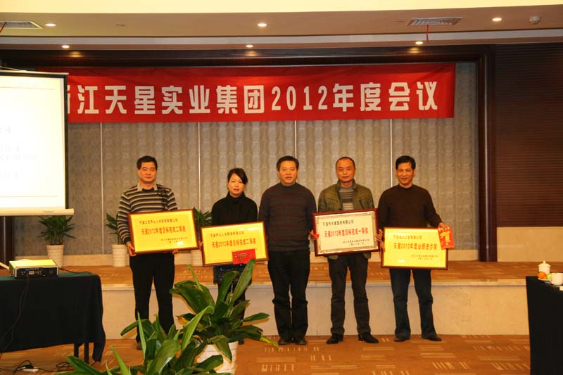 2013年1月11日下午浙江天星集團2012年度總結表彰會議在寧波漢雅晶都大酒店隆重召開,集團總裁、副總裁、各職能部門負責人以及集團下屬公司CEO、財務總監(jiān)、運營總監(jiān)、財務經(jīng)理等共計40多名企業(yè)骨干匯聚一堂,總結2012,部署2013。