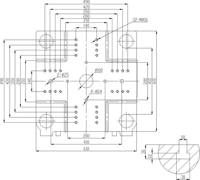 模板正面尺寸 PLATEN DIMENSIONS